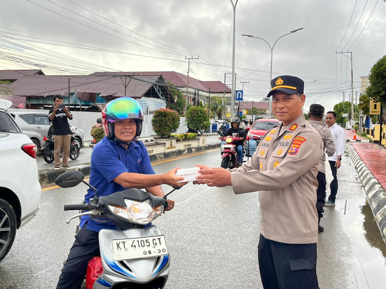 Pembagian dilakukan secara humanis dan tertib dengan tetap memperhatikan keselamatan pengguna jalan serta kelancaran arus lalu lintas.