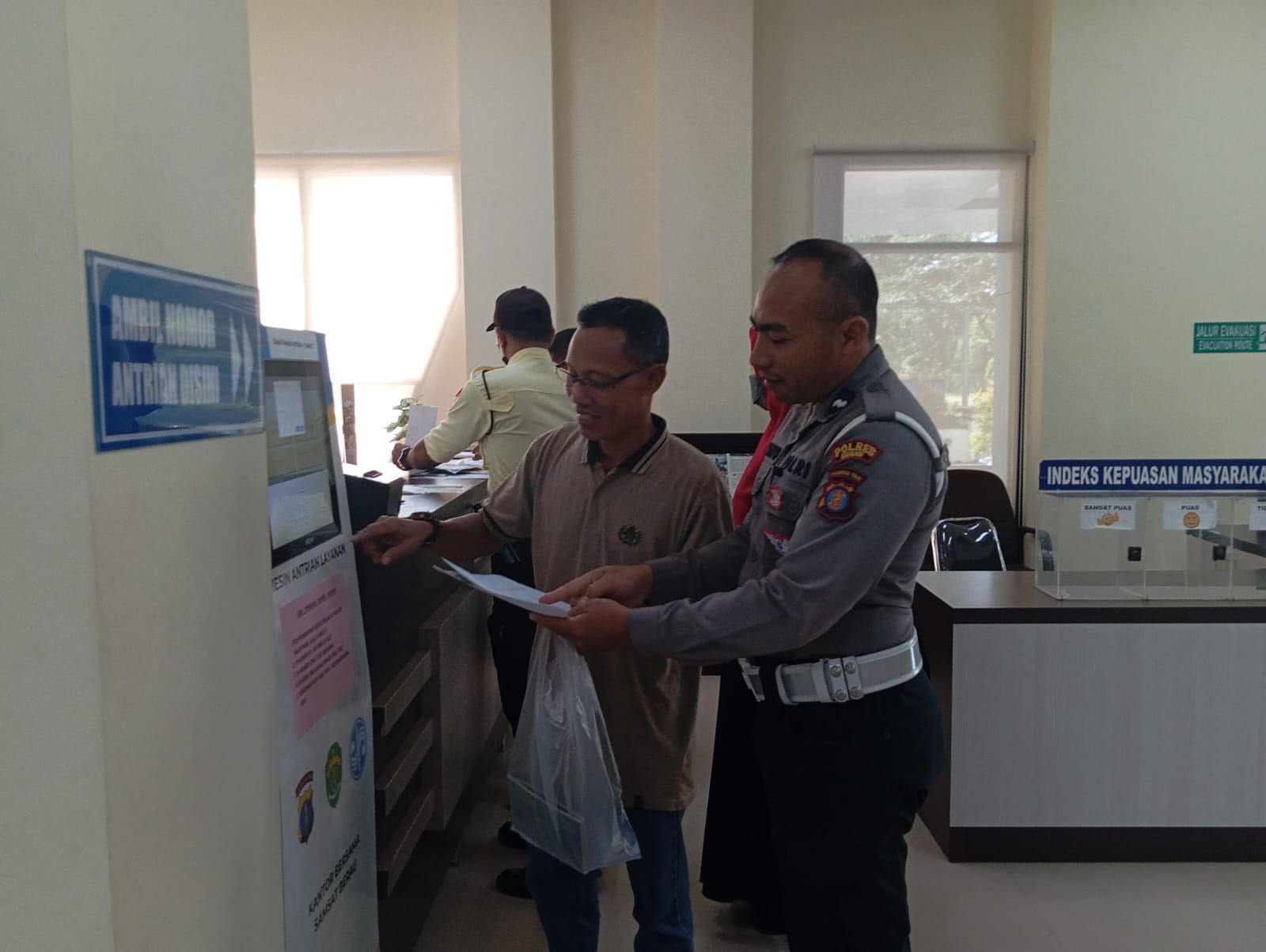 Kegiatan pendampingan ini dilaksanakan oleh personel Satlantas Polres Berau dengan memberikan penjelasan secara langsung kepada masyarakat mengenai tata cara pembayaran pajak kendaraan, persyaratan administrasi, serta pentingnya memenuhi kewajiban pajak tepat waktu. Melalui pendekatan yang humanis, petugas membantu masyarakat yang masih mengalami kesulitan dalam memahami prosedur pengurusan pajak kendaraan.