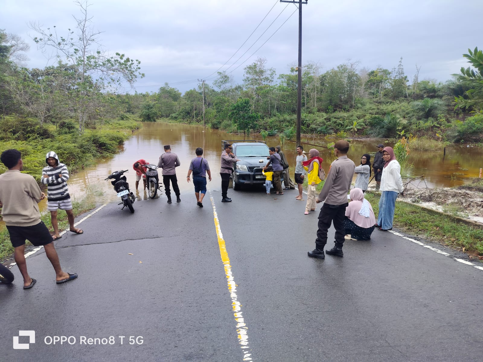 Di lokasi kejadian, petugas memberikan imbauan kepada para pengguna jalan baik kendaraan roda dua maupun roda empat agar selalu berhati-hati saat melintas di jalan yang tergenang banjir akibat luapan air sungai. Selain itu, petugas juga melakukan pengaturan lalu lintas untuk memastikan kendaraan yang melintas tetap tertib dan tidak saling menghalangi di badan jalan.