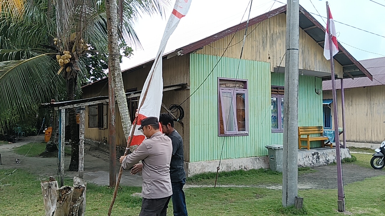 Bhabinkamtibmas Payung-Payung Ajak Warga Kibarkan Merah Putih Sambut HUT RI ke-80 di Wilayah Polsek Maratua