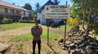 Wujud Kepedulian, Polsek Gunung Tabur Bersihkan Area Gereja dan Amankan Ibadah Minggu