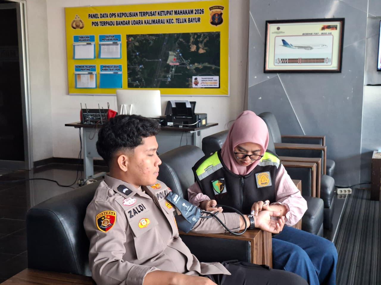 Dalam pelaksanaannya, petugas melakukan pemeriksaan kesehatan secara menyeluruh kepada anggota yang terlibat Operasi Ketupat Mahakam 2026. Pemeriksaan ini bertujuan untuk mendeteksi secara dini adanya keluhan kesehatan serta memastikan kesiapan fisik personel dalam menjalankan tugas pengamanan.