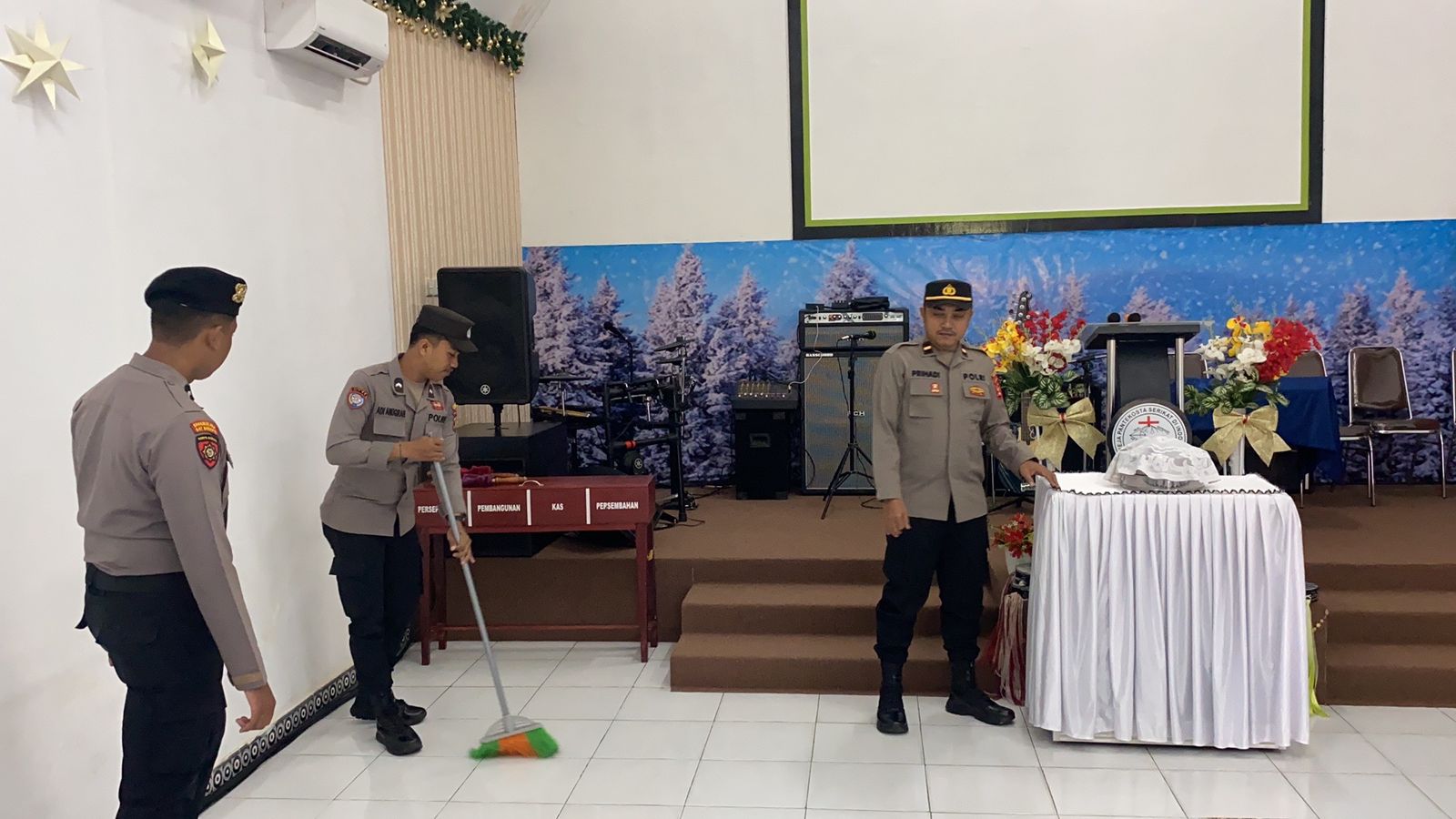 Dalam kegiatan ini, personel Polres Berau membersihkan area gereja sebagai bentuk bakti religi sekaligus menunjukkan kepedulian terhadap kebersihan tempat ibadah. Selain itu, Polres Berau juga membagikan makanan sehat dan bergizi kepada jemaat gereja sebagai wujud nyata kepedulian terhadap kesehatan masyarakat.