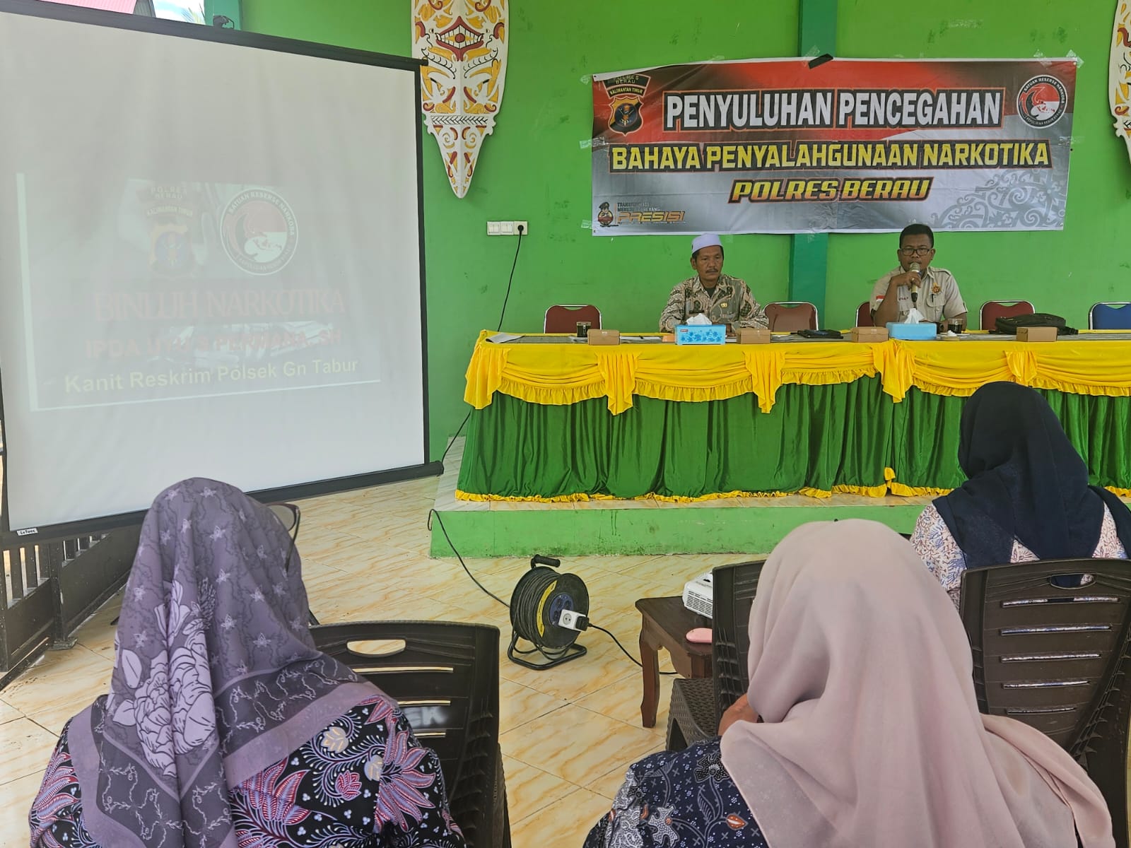Sosialisasi ini dipimpin langsung oleh Kanit Reskrim Polsek Gunung Tabur, Ipda Uyu S, S.H., yang bertindak sebagai narasumber. Dalam pemaparannya, Ipda Uyu mengingatkan warga tentang bahaya peredaran gelap dan penyalahgunaan narkotika yang semakin mengancam berbagai lapisan masyarakat.