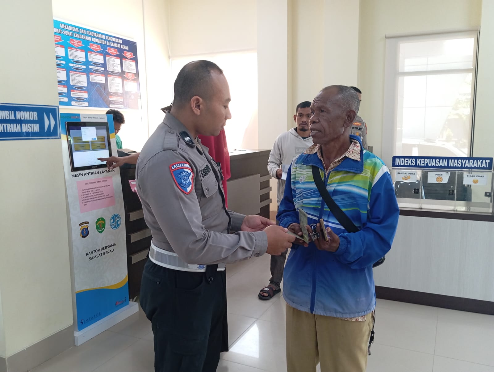 Satlantas Polres Berau terus menunjukkan komitmennya dalam memberikan pelayanan terbaik kepada masyarakat, khususnya di bidang administrasi kendaraan bermotor. Bertempat di ruang pelayanan Samsat Berau, petugas Satlantas terlihat aktif memberikan pendampingan serta penjelasan kepada wajib pajak yang sedang mengurus administrasi kendaraan.