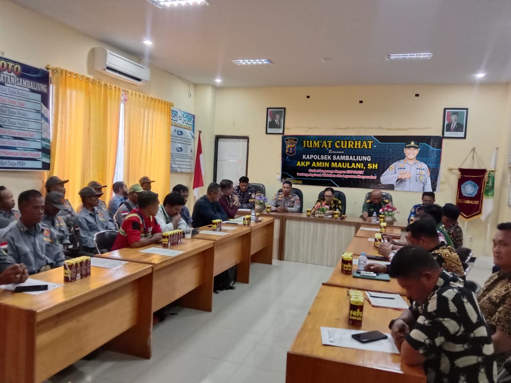 Polsek Sambaliung kembali menggelar kegiatan Jumat Curhat sebagai wadah dialog bersama masyarakat. Kegiatan tersebut dilaksanakan pada Jumat (22/8/2025) pukul 08.00 Wita bertempat di Kantor Kecamatan Sambaliung, Kabupaten Berau, bersama Kapolsek Sambaliung AKP Amin Maulani, S.H., M.H.