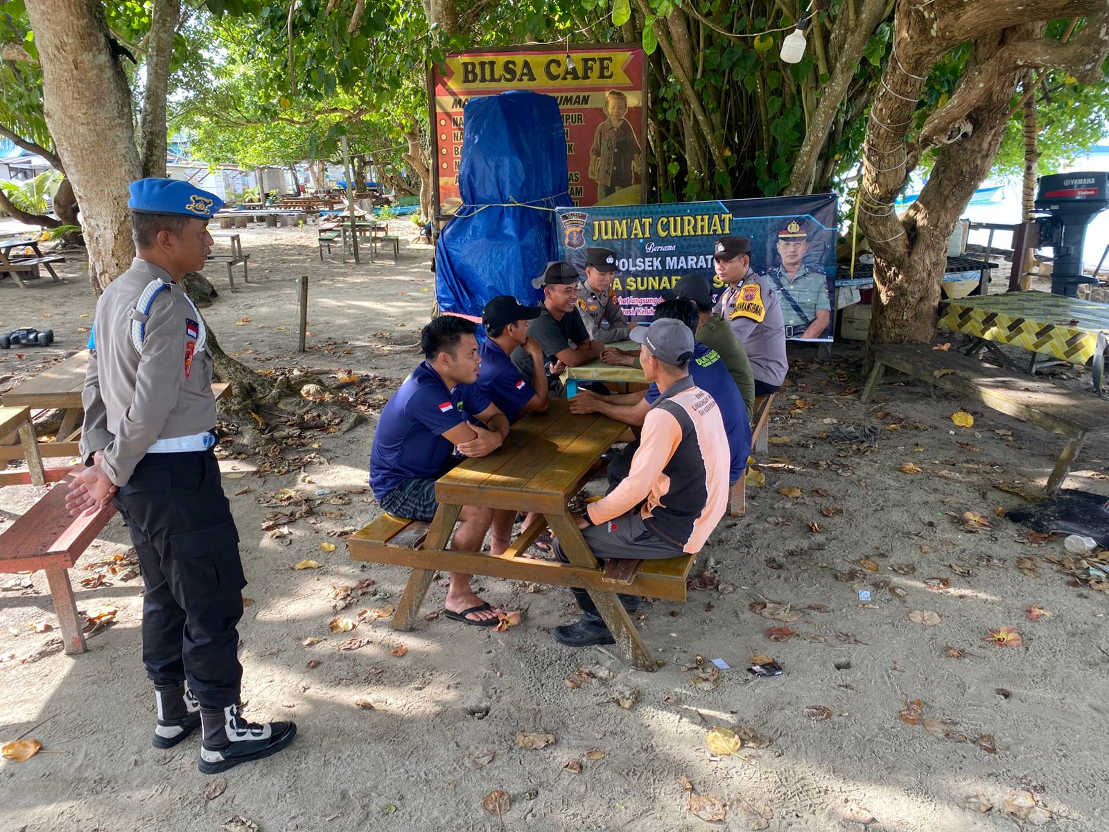 Personel Polsek Maratua melaksanakan kegiatan Jum’at Curhat pada Jumat, 30 Januari 2026, pukul 09.00 Wita, bertempat di Kampung Teluk Harapan, Kecamatan Maratua. Kegiatan ini bertujuan untuk menampung aspirasi, saran, serta keluhan masyarakat secara langsung guna mendukung terciptanya situasi kamtibmas yang aman dan kondusif.