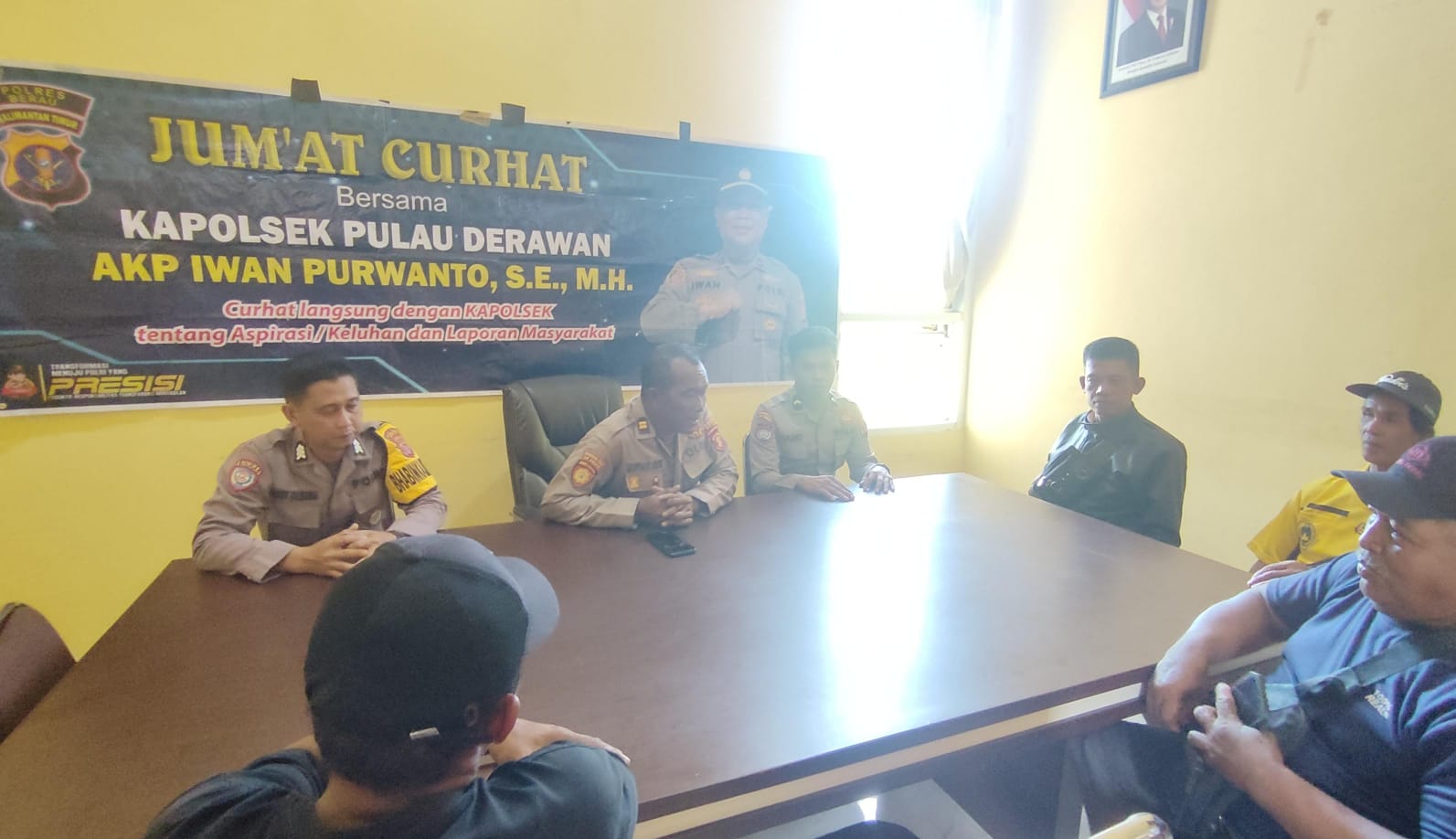 Polres Berau – Pada hari Jumat, 05 September 2025 pukul 09.00 hingga 10.00 Wita, Polsek Pulau Derawan melaksanakan kegiatan Jumat Curhat bertempat di Mako Polsek Pulau Derawan, Kampung Tanjung Batu, Kecamatan Pulau Derawan, Kabupaten Berau. Kegiatan ini dihadiri oleh IPTU Supian Nur, Brigpol Dody Kusuma, serta masyarakat sekitar.