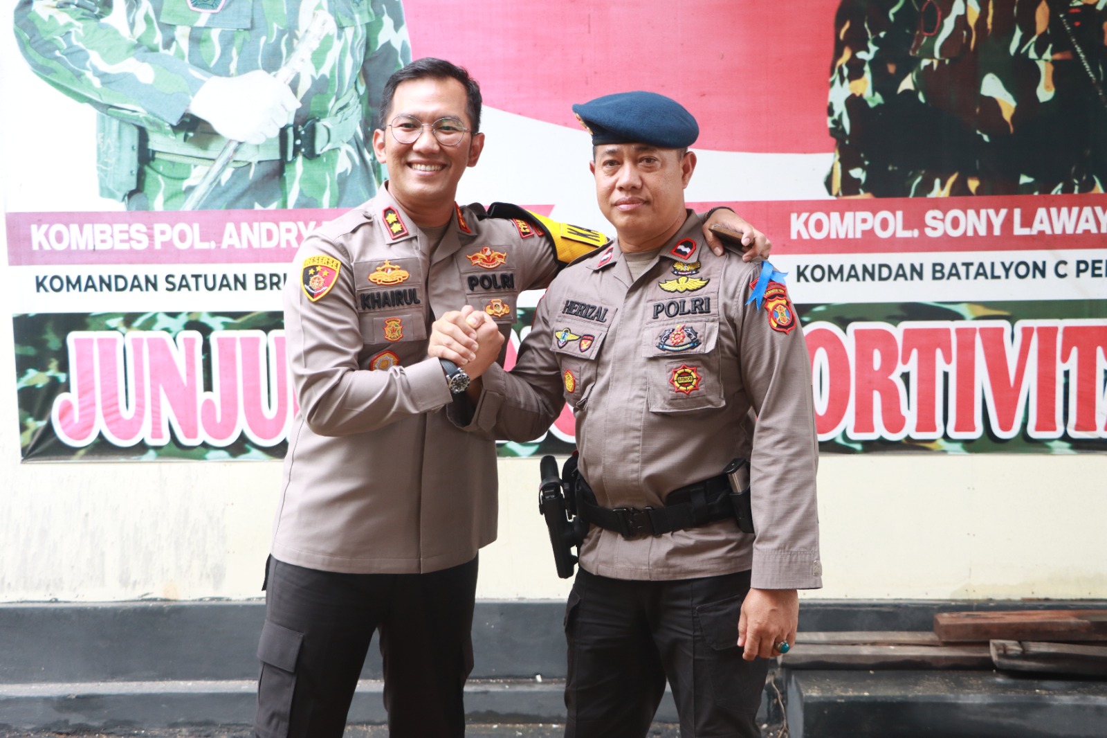 Dalam kegiatan tersebut, AKBP Khairul Basyar disambut langsung oleh Komandan Kompi 3 Batalyon C Pelopor, Iptu Junaedi, yang mengapresiasi kunjungan Kapolres beserta rombongan.