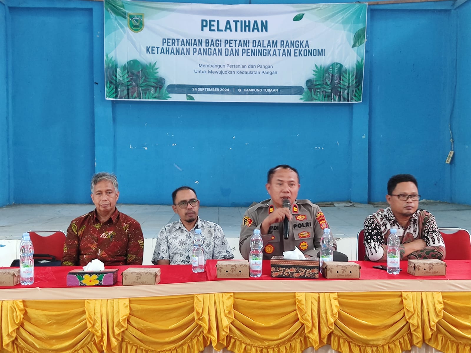 Polres Berau – Pada hari Rabu, 2 Oktober 2024, pukul 09.00 WITA, bertempat di Gedung Serbaguna Kampung Tubaan, Kecamatan Tabalar, Kabupaten Berau, telah dilaksanakan Pelatihan Pertanian bagi petani setempat. Pelatihan ini bertujuan untuk mendukung ketahanan pangan dan meningkatkan ekonomi masyarakat di Kampung Tubaan.