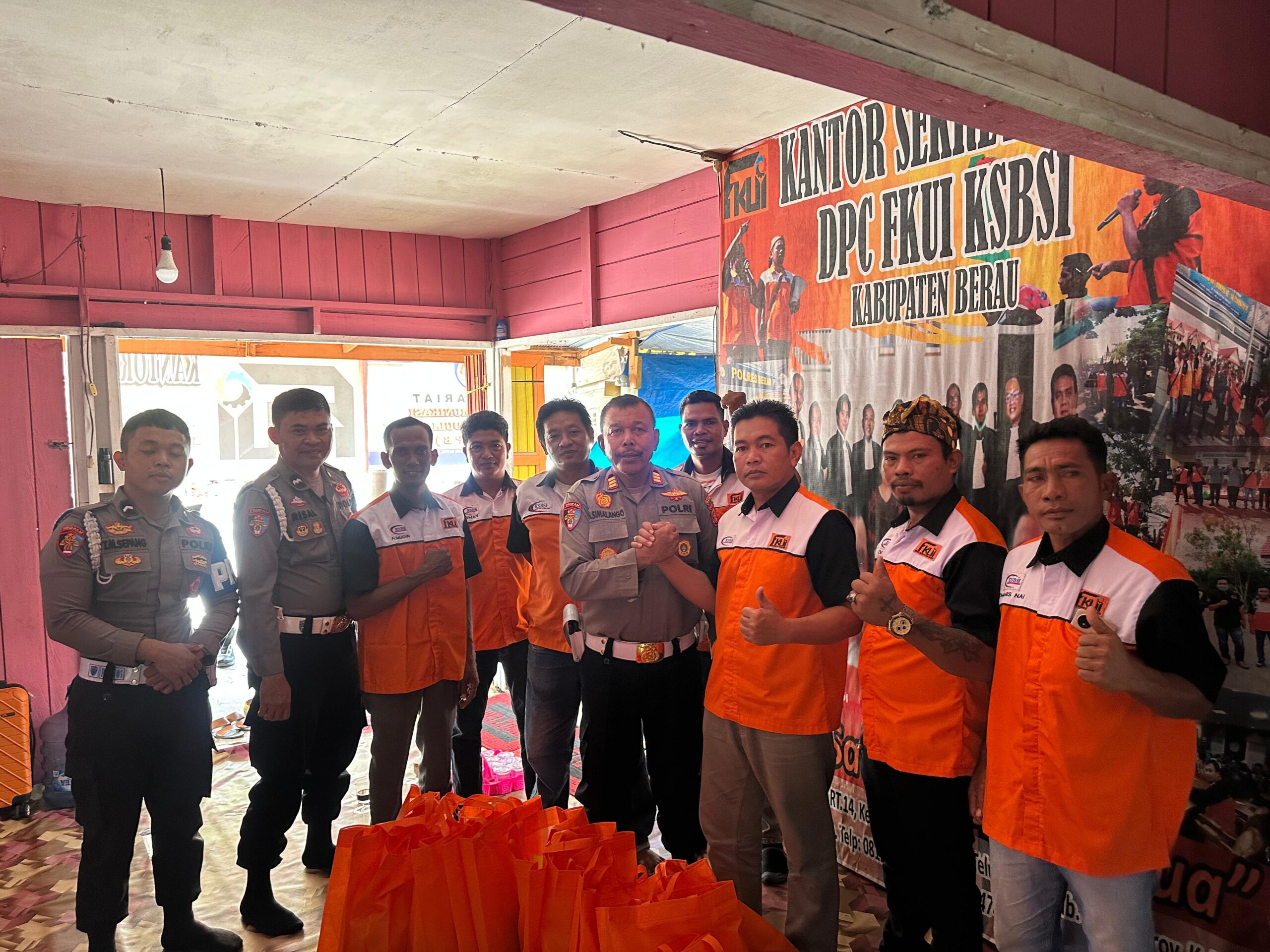 Turut hadir dan berpartisipasi dalam kegiatan ini personel Sipropam Polres Berau yaitu Aipda Syamrisal, Bripda M. Bagus Septian, dan Bripda Teddi Mario S. Mereka mendistribusikan paket sembako kepada anggota FKUI KSBSI Teluk Bayur yang hadir.
