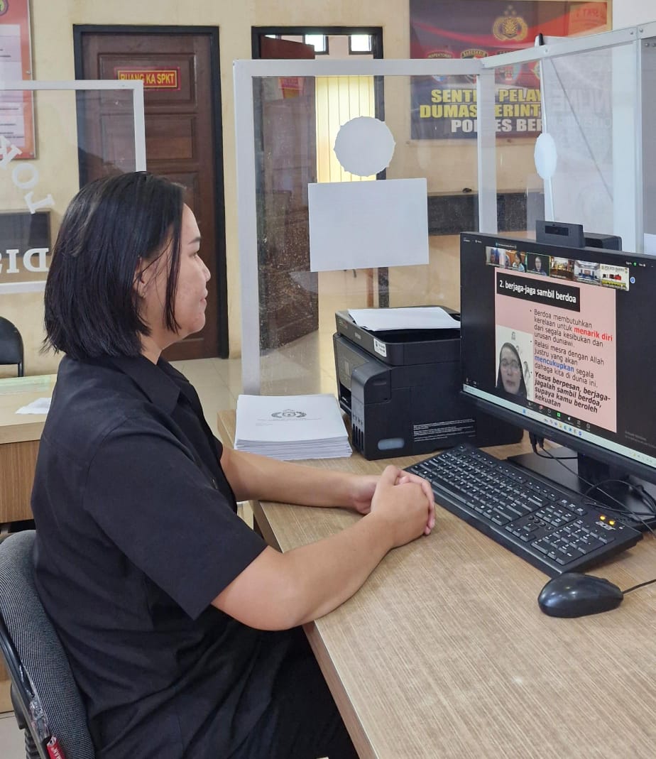 Berau, 5 Desember 2024 – Dalam rangka meningkatkan spiritualitas dan moralitas para personel, Polres Berau menggelar kegiatan pembinaan rohani (Binrohtal) bagi anggota yang beragama Kristen Protestan dan Katolik, Kamis (5/12). Kegiatan ini dilaksanakan secara virtual melalui Zoom Meeting, melibatkan personel di Mako Polres Berau dan Mako Polsek Jajaran.