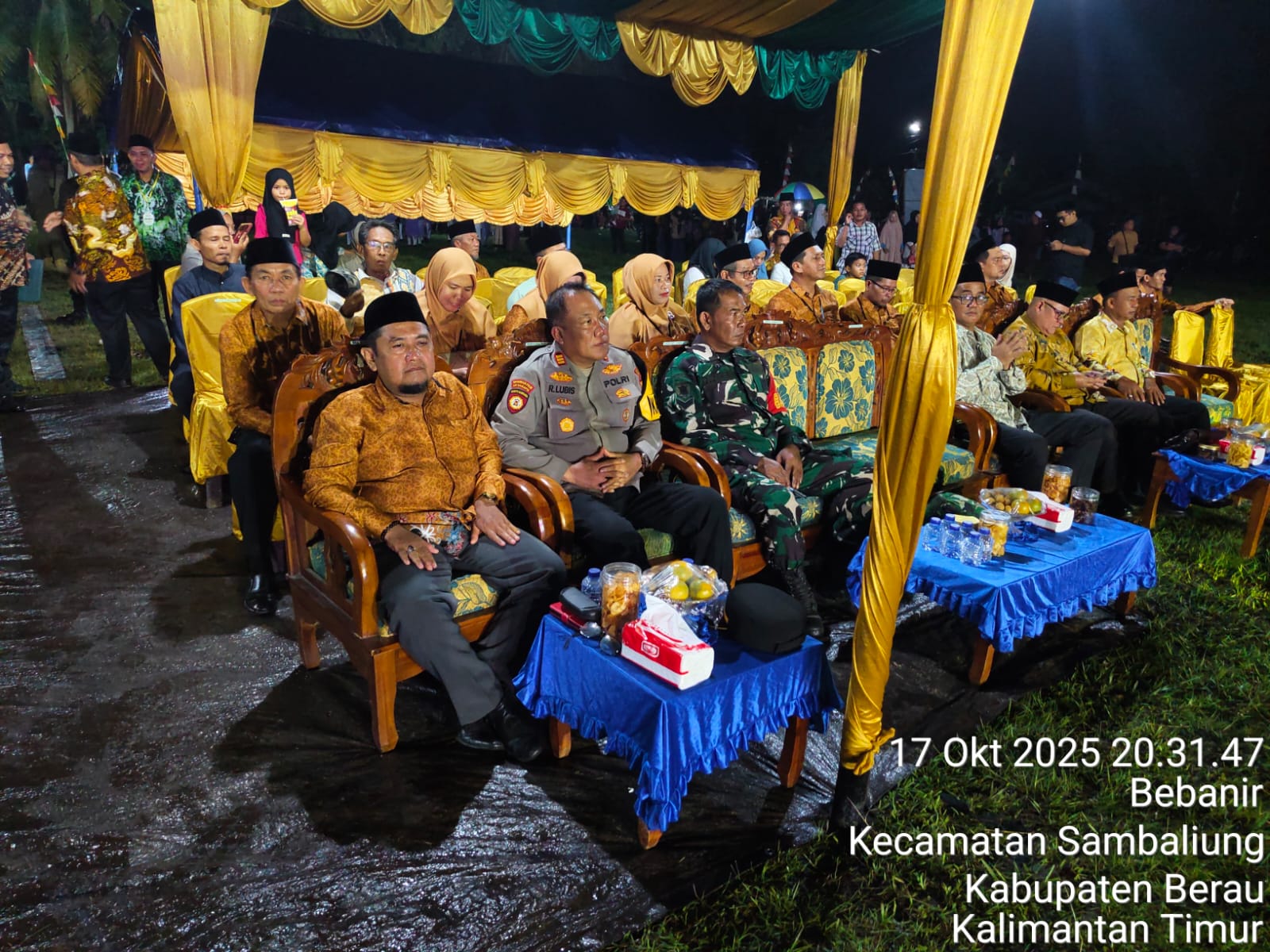 Polres Berau – Polsek Sambaliung melaksanakan pengamanan kegiatan pembukaan Musabaqah Tilawatil Qur’an (MTQ) ke-55 Tingkat Kecamatan Sambaliung Tahun 2025 yang digelar di Lapangan Sepak Bola Karya Bakti, Kampung Sei Bebanir Bangun, Jumat (17/10/2025) malam. Kegiatan berlangsung meriah dan khidmat dengan dihadiri ratusan masyarakat dari berbagai kampung di wilayah Sambaliung.