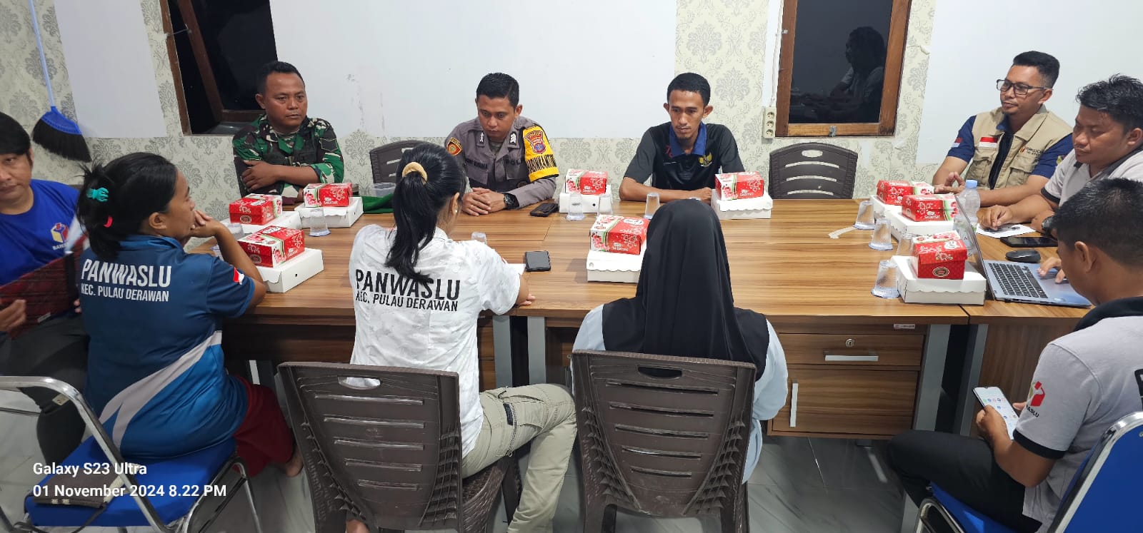 Dalam rapat yang dipimpin oleh Ketua Panwascam, Yoyon Supandi, S.Pd.I, turut hadir pula jajaran Divisi Penanganan Pelanggaran & Penyelesaian Sengketa, Divisi Hukum, serta Divisi Hubungan Masyarakat Panwaslu Pulau Derawan. Bhabinkamtibmas Tanjung Batu, Brigpol Dody Kusuma, dan Babinsa Tanjung Batu, Serma Arman, juga hadir untuk mendukung koordinasi pengamanan.