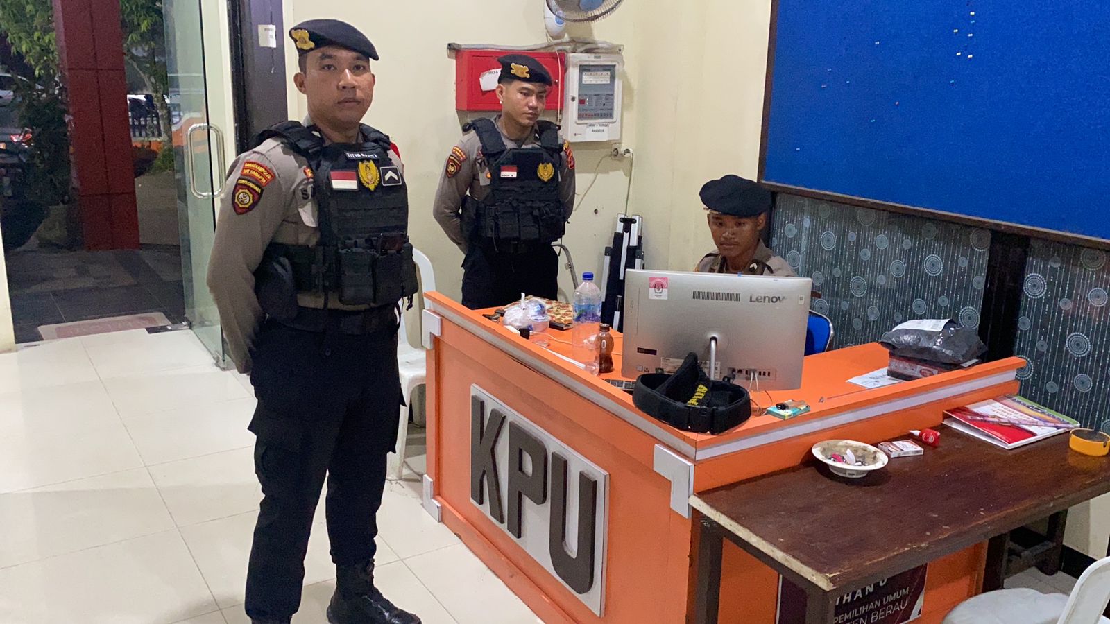 Dalam kegiatan ini, personel Polres Berau memberikan imbauan kepada petugas keamanan agar melakukan patroli secara bergantian di sekitar kantor KPU guna mengantisipasi potensi tindak kejahatan seperti pencurian.