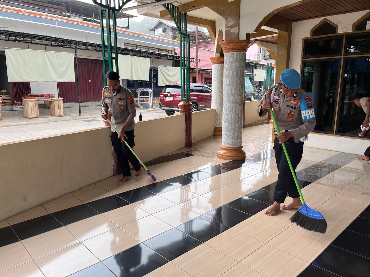 Terpantau di lokasi, personel Polsek Teluk Bayur tampak antusias membersihkan area dalam masjid hingga halaman sekitar dengan menggunakan peralatan kebersihan yang telah disiapkan. Kegiatan ini berlangsung selama kurang lebih satu jam dan berjalan dengan aman serta tertib.