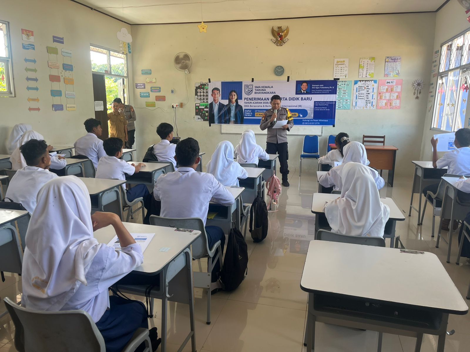 Dalam kegiatan ini, para petugas dari Polsek Gunung Tabur, khususnya Bhabinkamtibmas Kampung Tasuk, memberikan penjelasan mengenai syarat-syarat pendaftaran di SMA KEMALA TARUNA BHAYANGKARA kepada seluruh siswa yang hadir. Mereka diberi informasi penting mengenai proses seleksi dan kesempatan yang ditawarkan oleh sekolah tersebut untuk tahun ajaran 2025/2026.