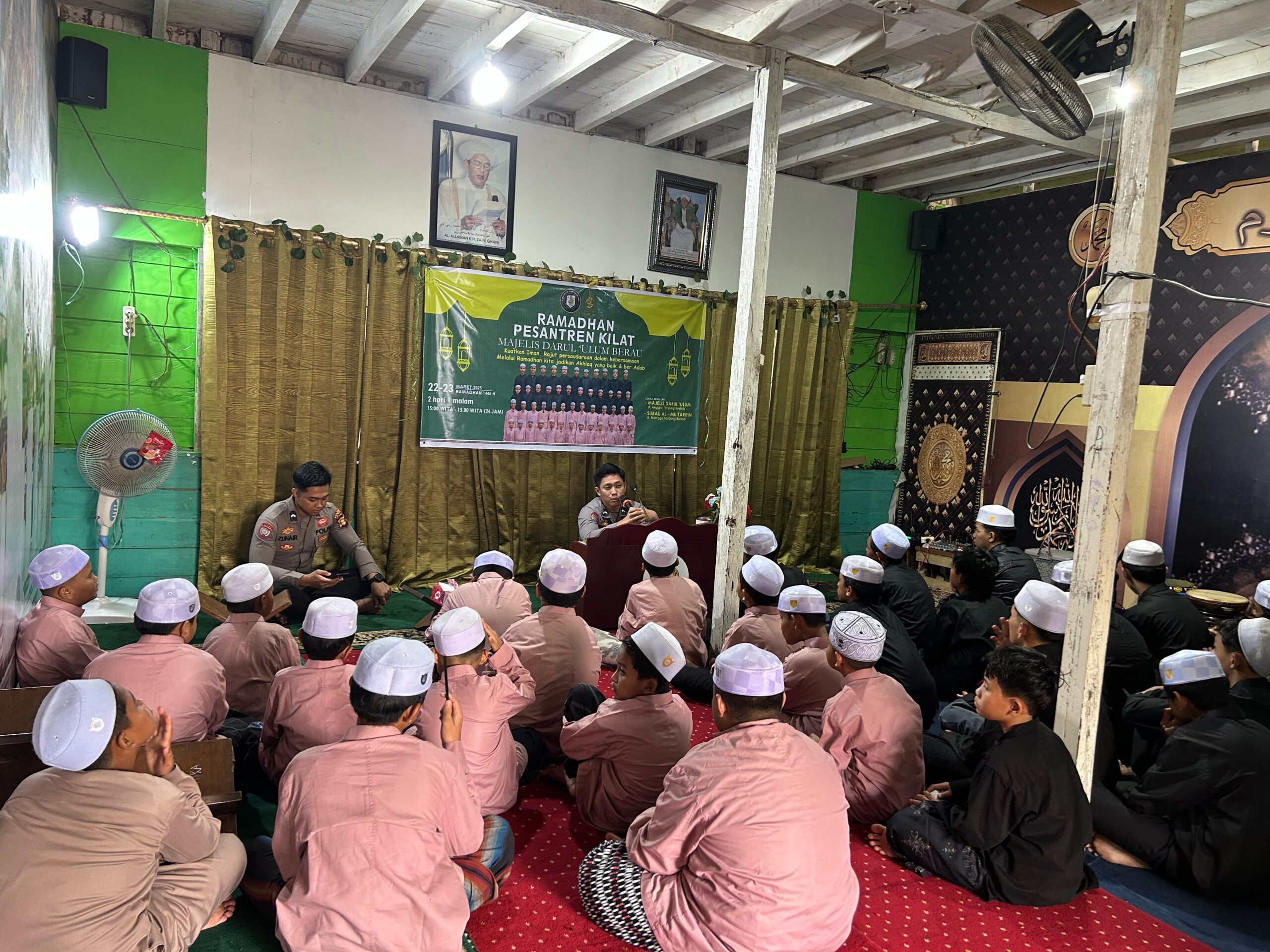 Tanjung Redeb – Dalam rangka menyemarakkan bulan suci Ramadan, Sat Binmas Polres Berau menggelar kegiatan edukasi hukum, bahaya narkoba, dan tata tertib lalu lintas di Majelis Darul Ulum, Berau. Kegiatan yang berlangsung pada Senin (24/3/2025) ini diisi oleh Bripda Wahyu Ramadhan dan Bripda Zuhair, yang memberikan penyuluhan kepada para peserta pesantren kilat Ramadan.