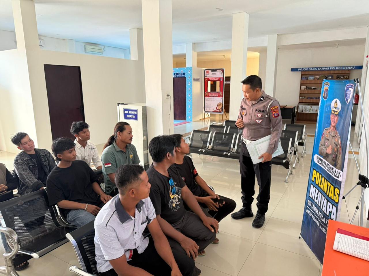 Satuan Lalu Lintas (Satlantas) Polres Berau melaksanakan kegiatan Polantas Menyapa sebagai upaya mendekatkan diri dengan masyarakat sekaligus memberikan edukasi terkait keselamatan berlalu lintas. Kegiatan ini dilaksanakan di sejumlah titik strategis wilayah Kabupaten Berau, dengan menyasar para pengguna jalan, baik pengendara roda dua maupun roda empat.