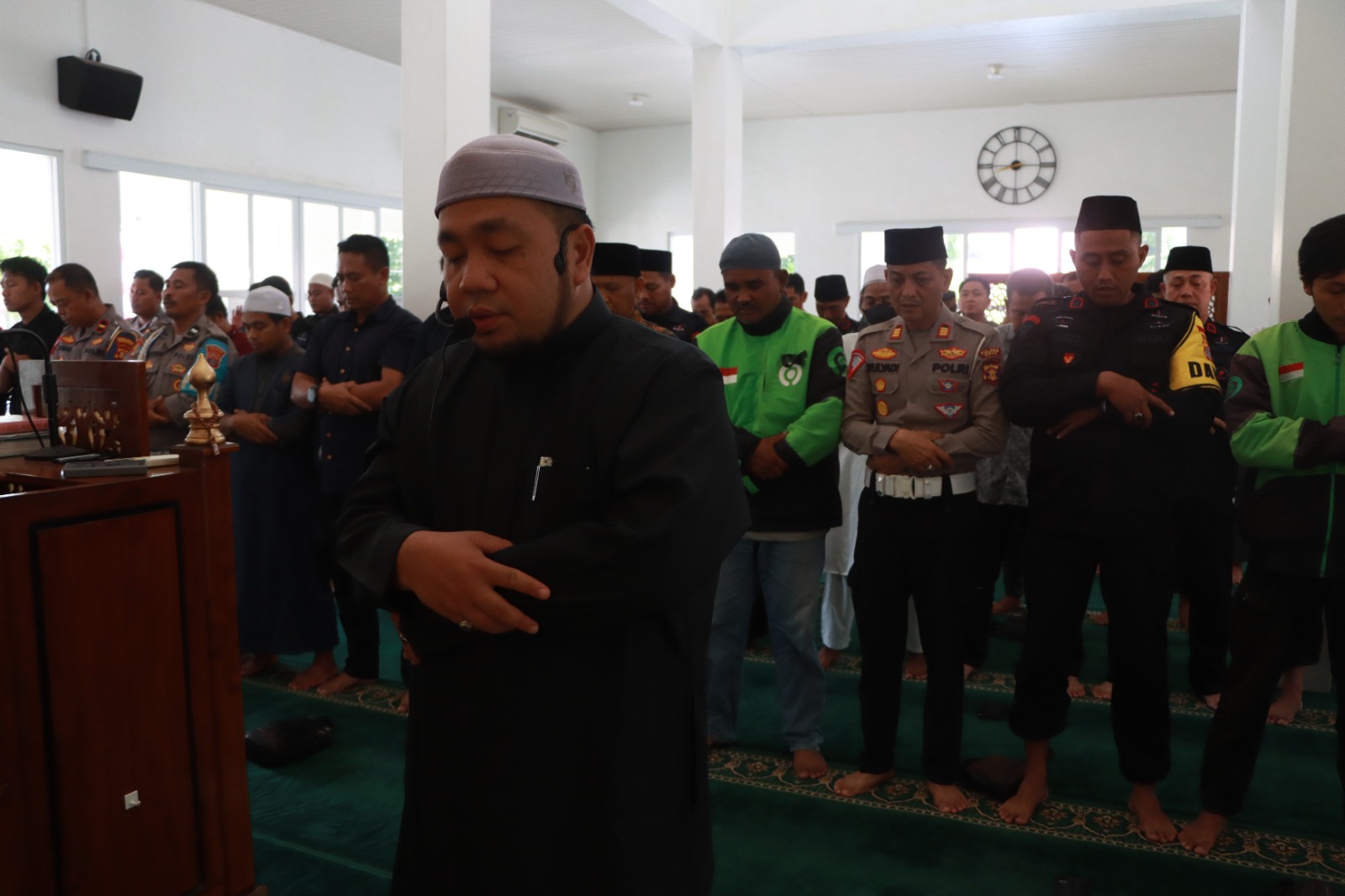 Suasana khidmat terasa saat personel kepolisian bersama komunitas ojol melaksanakan salat gaib yang dipimpin oleh imam masjid. Doa bersama kemudian dilanjutkan dengan harapan agar almarhum mendapatkan tempat terbaik di sisi Allah SWT, serta keluarga yang ditinggalkan diberikan ketabahan.