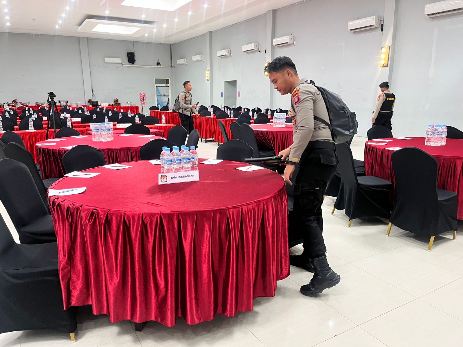 Kegiatan yang dimulai pukul 07.30 WITA ini dilakukan untuk memastikan keamanan dan kelancaran jalannya rapat pleno. Petugas melakukan pengecekan menyeluruh terhadap situasi ruangan untuk memastikan tidak ada barang-barang mencurigakan atau berpotensi mengganggu ketertiban.