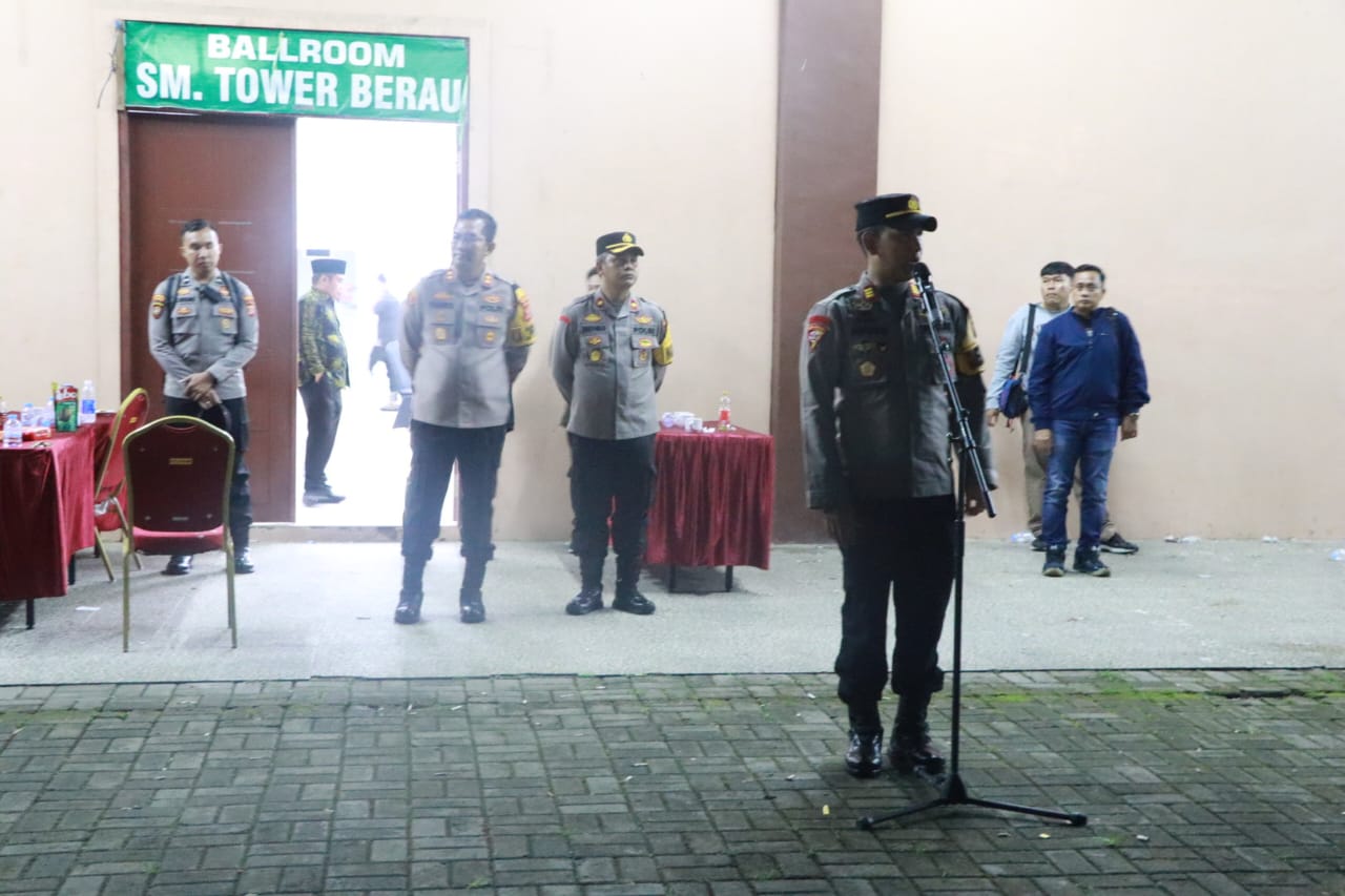 Berau – Polres Berau bersama unsur TNI dan Brimob berhasil melaksanakan pengamanan Rapat Pleno Terbuka Rekapitulasi Suara Tingkat Kabupaten pada Selasa, 3 Desember 2024. Kegiatan berlangsung di Ballroom Hotel SM Tower, Jl. Teuku Umar, Tanjung Redeb, dalam rangka pemilihan Gubernur dan Wakil Gubernur Kalimantan Timur serta Bupati dan Wakil Bupati Berau.