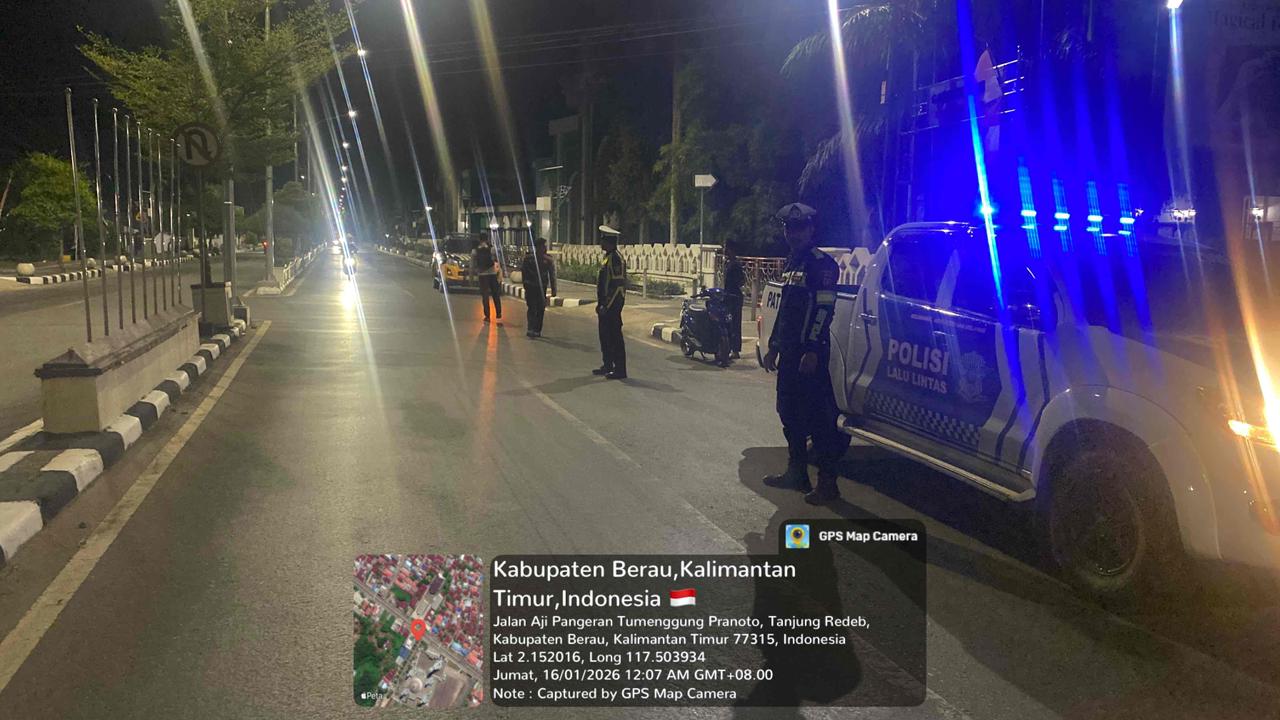 Polres Berau – Satuan Lalu Lintas Polres Berau terus meningkatkan kehadiran personel di tengah masyarakat melalui kegiatan patroli rutin yang dilaksanakan Unit Turjawali Sat Lantas Polres Berau pada Rabu (14/1/2026) malam. Kegiatan dimulai pukul 20.30 Wita dengan titik awal di Mako Sat Lantas Polres Berau.