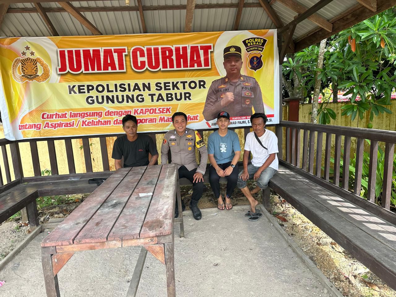 Polsek Gunung Tabur kembali melaksanakan kegiatan Jumat Curhat sebagai sarana dialog langsung dengan masyarakat. Kegiatan tersebut digelar pada Jumat, 28 November 2025 pukul 10.30 hingga 11.15 Wita, bertempat di Mako Polsek Gunung Tabur, Kelurahan Gunung Tabur, Kecamatan Gunung Tabur, Kabupaten Berau. Agenda ini berfokus pada pembahasan keamanan lingkungan serta upaya menjaga situasi kamtibmas tetap kondusif.