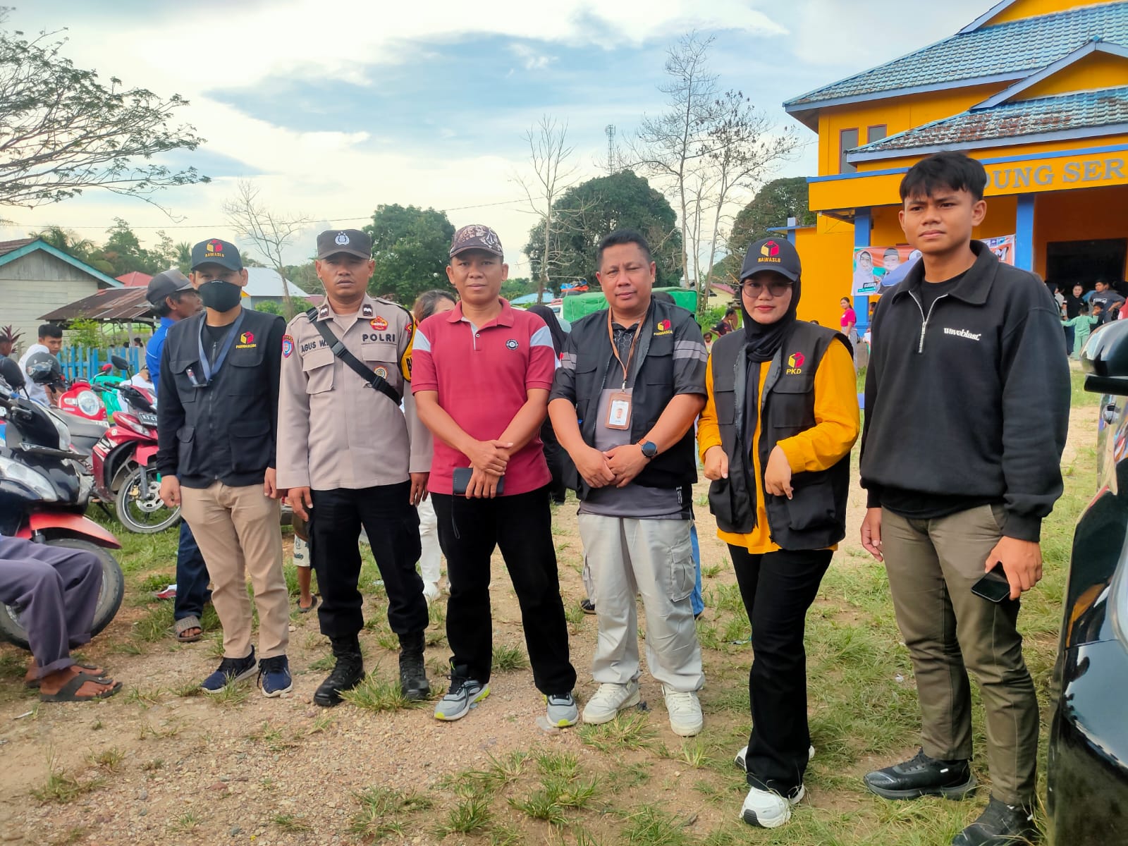 Selain memberikan pengamanan, petugas juga menyampaikan imbauan kepada masyarakat yang hadir agar senantiasa menjaga ketertiban dan mengikuti aturan yang berlaku. Pengawasan dilakukan di seluruh area sekitar Gedung Serba Guna untuk memastikan tidak ada potensi gangguan keamanan yang muncul.
