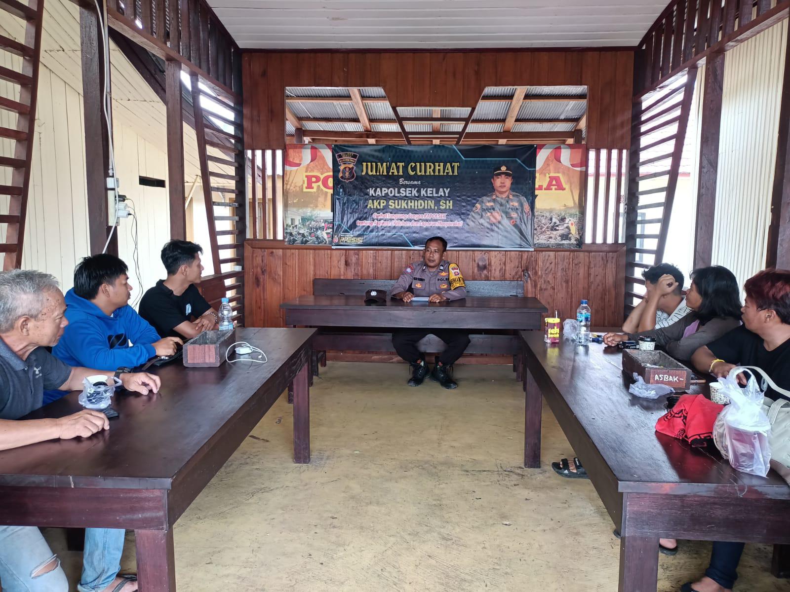 Dalam rangka mempererat komunikasi antara Polri dan masyarakat serta menjaga situasi kamtibmas yang kondusif, Polsek Kelay kembali melaksanakan kegiatan Jum’at Curhat pada Jumat, 1 Agustus 2025 pukul 09.30 Wita bertempat di rumah warga RT 03 Kampung Sido Bangen, Kecamatan Kelay, Kabupaten Berau.
