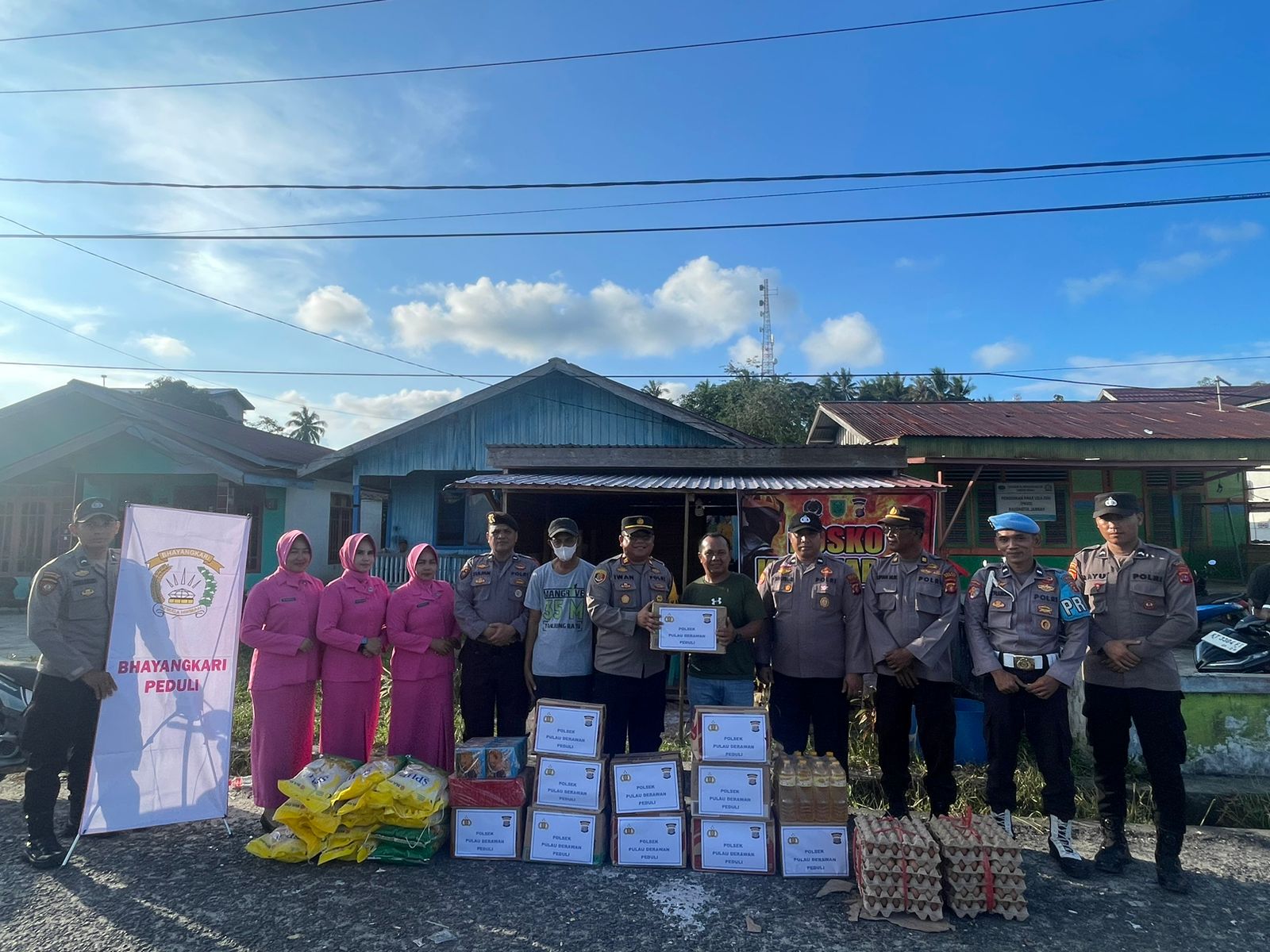 Tanjung Batu, 14 November 2024 – Sebagai bentuk kepedulian terhadap korban bencana kebakaran, Polsek Pulau Derawan bersama Bhayangkari memberikan bantuan sosial (bansos) kepada masyarakat terdampak di Kampung Tanjung Batu, Kecamatan Pulau Derawan, Kabupaten Berau. Kegiatan yang berlangsung pada Kamis sore, pukul 16.00 WITA, ini disambut dengan penuh haru oleh warga yang terdampak bencana.
