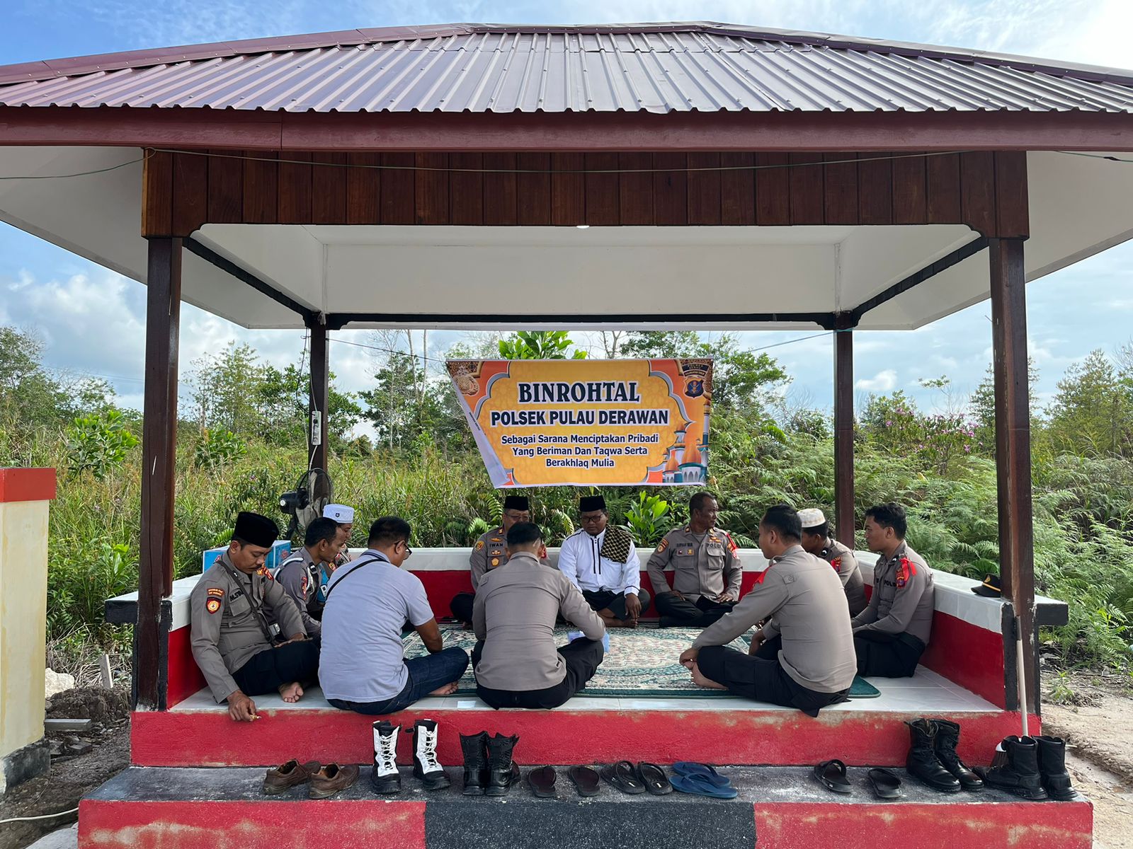 Dalam upaya memperkuat nilai-nilai keagamaan di tengah kesibukan tugas kepolisian, Polsek Pulau Derawan menggelar kegiatan pembinaan rohani dan mental (Binrohtal) rutin yang bertempat di Teras Wira Andhang Pandhega Mako Polsek Pulau Derawan, Jl. Raya Kabupaten KM 04 RT.013, Kampung Tanjung Batu, Kecamatan Pulau Derawan. Kegiatan ini dipimpin langsung oleh Kapolsek Pulau Derawan, Iptu Iwan Purwanto, S.E.