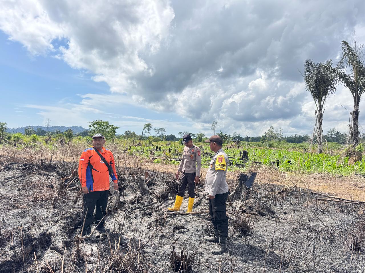 Berau – Personel Pospol Biatan Polsek Talisayan bersama BPBD Kecamatan Biatan melakukan pengecekan dan penanggulangan kebakaran hutan dan lahan (karhutla) di wilayah Kampung Biatan Bapinang, Kecamatan Biatan, Kabupaten Berau, Sabtu (2/8/2025) pukul 10.00 WITA.