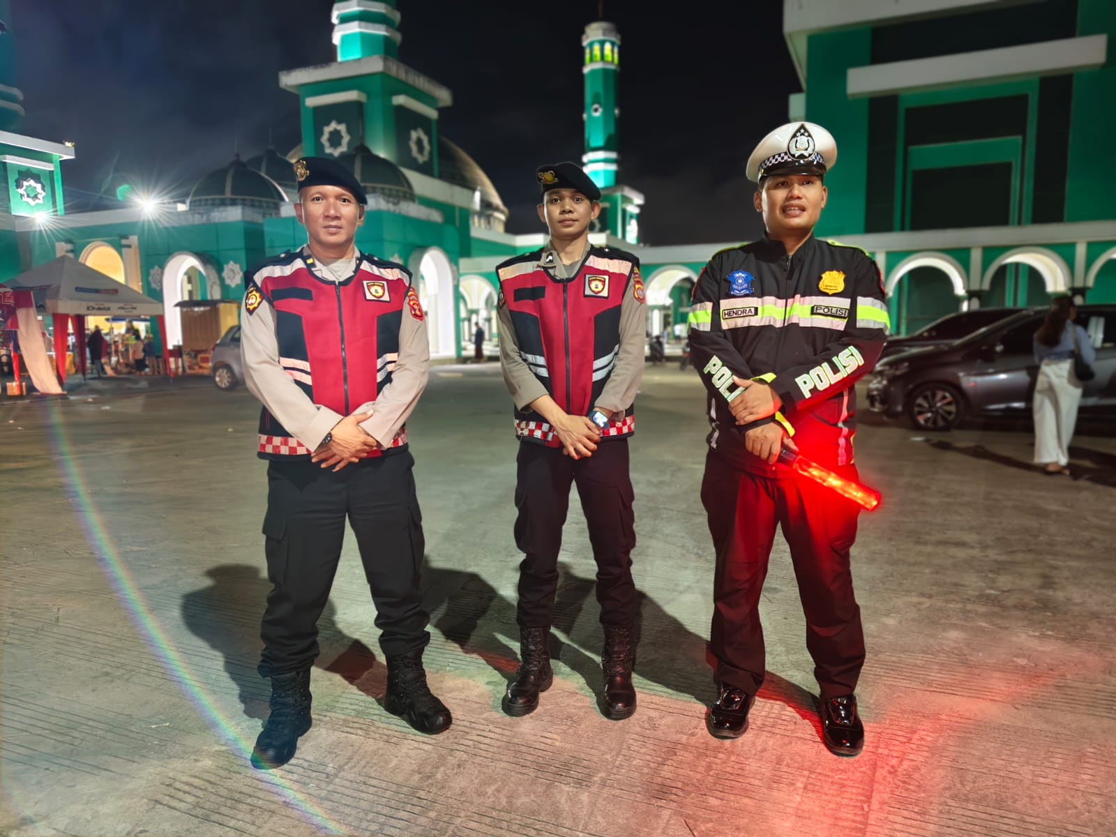 Pengamanan ini dipimpin langsung oleh IPDA Suyono bersama personel gabungan dari Sat Lantas dan Sat Samapta Polres Berau. Di antaranya AIPTU Ismail Hasan, BRIPKA Hendratarios Darmawan S.H., BRIPDA Anjas Mara, BRIPDA Komang Beriane, dan BRIPDA Ahmad Ridwan. Petugas tidak hanya memastikan keamanan di lingkungan masjid tetapi juga mengatur lalu lintas kendaraan jamaah yang memadati area sekitar.