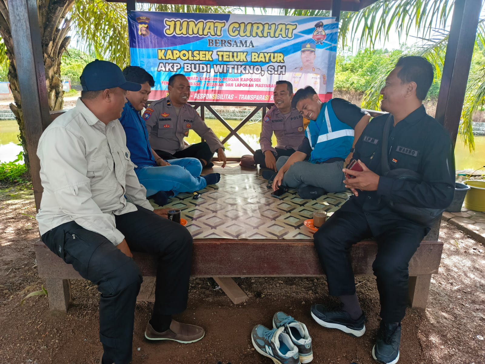 Polsek Teluk Bayur kembali menggelar kegiatan Jum’at Curhat bersama warga, yang kali ini bertempat di Jl. Raja Alam II RT. 013, Kelurahan Teluk Bayur, Kecamatan Teluk Bayur, Kabupaten Berau. Kegiatan ini dipimpin langsung oleh Kanit Binmas Polsek Teluk Bayur, Ipda Sudarso, S.H., dan bertujuan untuk mendengarkan keluhan masyarakat sekaligus membahas situasi keamanan dan ketertiban masyarakat (kamtibmas) di wilayah tersebut.
