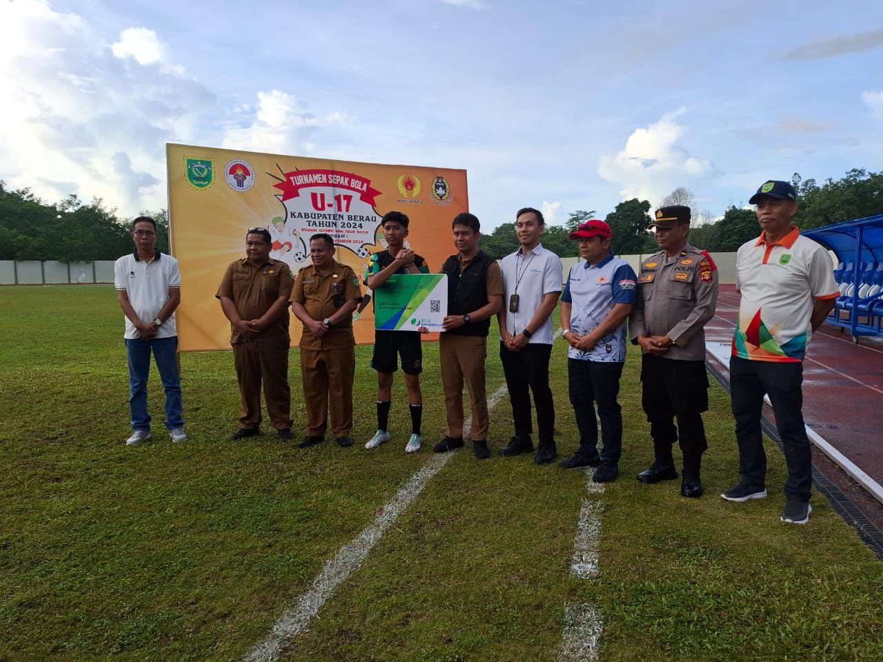 Polres Berau – Pembukaan turnamen sepak bola U-17 tingkat Kabupaten Berau tahun 2024 berlangsung meriah di Stadion Mini Olimpic, Jalan Stasiun, Kecamatan Teluk Bayur, pada Senin, 11 November 2024. Acara ini dihadiri sejumlah pejabat daerah dan tokoh olahraga, dengan pengamanan ketat oleh personel Polsek Teluk Bayur. Wakapolsek Teluk Bayur, Ipda Suwarno, hadir mewakili Kapolsek Teluk Bayur dalam kegiatan tersebut.