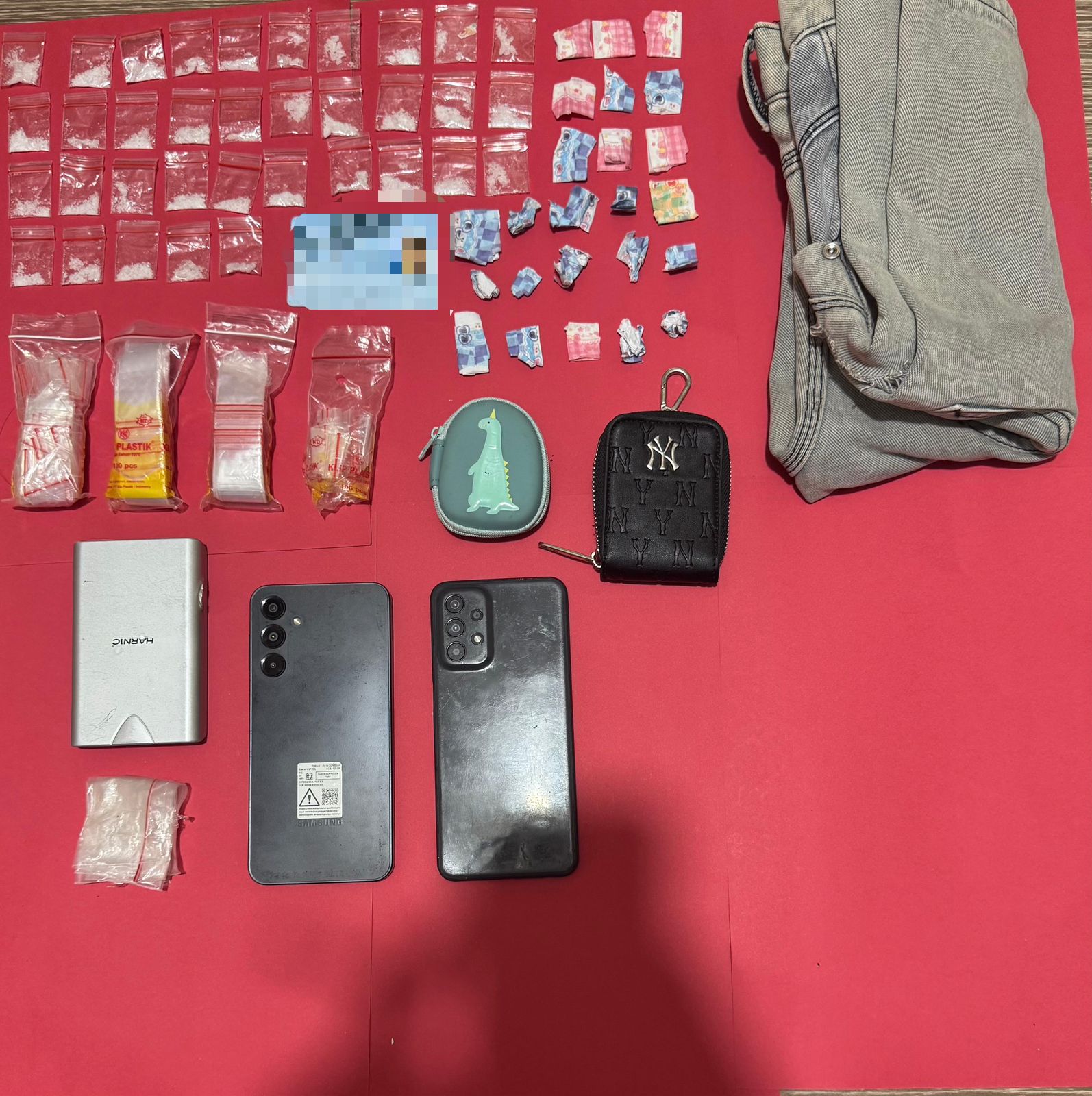 Barang bukti yang diamankan di antaranya 24 lakban bekas pembungkus sabu, 4 bundel plastik c-tik, satu plastik c-tik besar, dua dompet kecil, dua unit handphone, satu timbangan digital warna silver, satu gunting, satu sendok sabu, dua lakban bergambar, satu celana pendek jeans, serta satu unit sepeda motor warna hitam yang diduga digunakan tersangka dalam aktivitasnya.