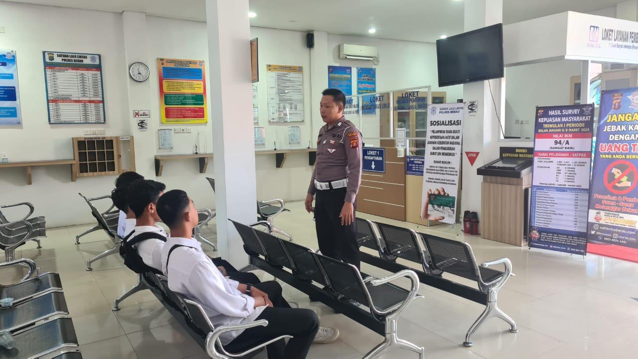Satlantas Polres Berau melaksanakan kegiatan sosialisasi keselamatan berlalu lintas sebagai upaya meningkatkan kesadaran dan kepatuhan masyarakat dalam berlalu lintas di jalan raya.