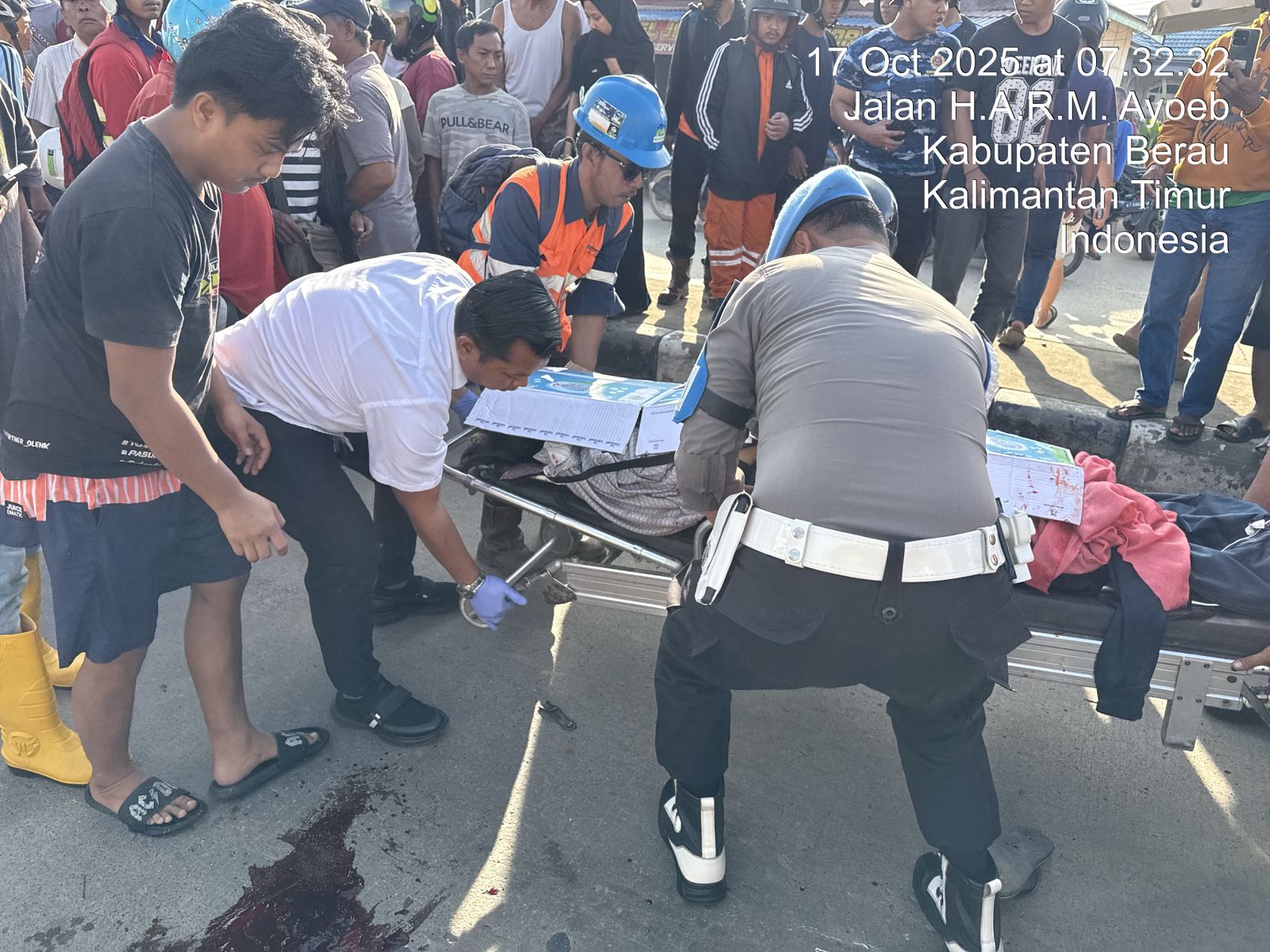 Peristiwa tersebut terjadi saat arus lalu lintas pagi cukup padat. Melihat kejadian itu, anggota Sipropam dan Satlantas Polres Berau yang sedang melintas segera menghentikan kendaraan dan mengevakuasi korban ke rumah sakit sambil mengatur arus lalu lintas agar tidak terjadi kemacetan.