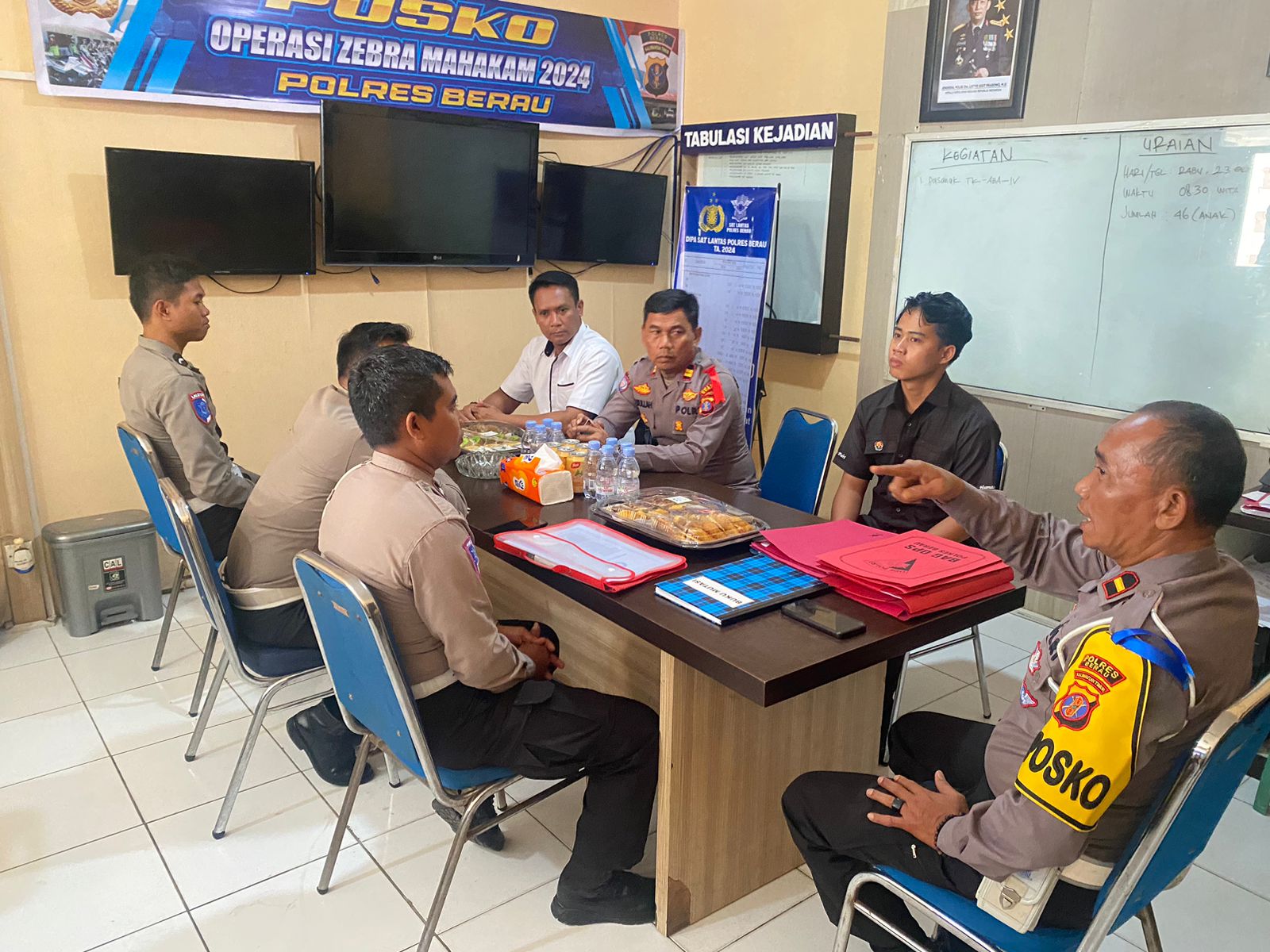 Polres Berau – Pada hari Rabu, 23 Oktober 2024, Direktorat Lalu Lintas Polda Kaltim melaksanakan kegiatan supervisi Operasi Zebra Mahakam 2024 di Polres Berau. Kegiatan supervisi ini berlangsung di Ruang Urmin Satlantas Polres Berau, dipimpin langsung oleh Kasat Lantas Polres Berau AKP Wulyadi.