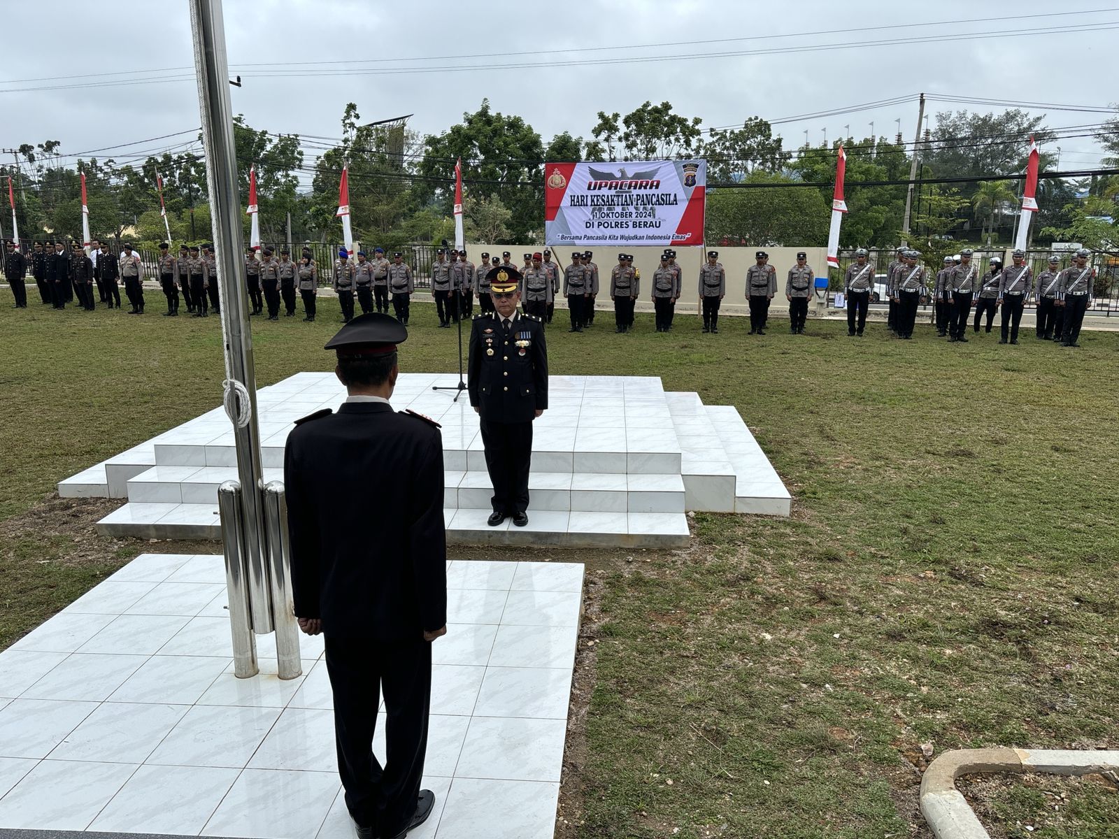 Kabag SDM Polres Berau Kompol Kaharuddin dalam amanatnya menyampaikan pentingnya peran Pancasila sebagai dasar pemersatu bangsa di tengah berbagai tantangan yang dihadapi.