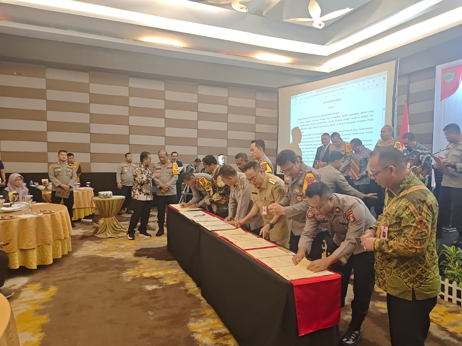 Penandatanganan perjanjian kerja sama dilakukan secara simbolis antara Pemerintah Provinsi Kaltim dengan Polda Kaltim serta diikuti oleh Polres dan pemerintah kabupaten/kota se-Kalimantan Timur. Penjabat Gubernur Kaltim yang turut hadir dalam acara tersebut juga memberikan sambutan, menegaskan dukungannya terhadap program kerja sama ini.